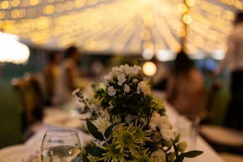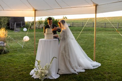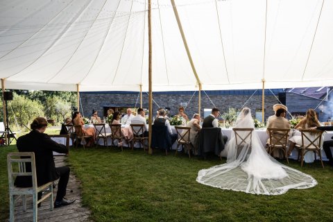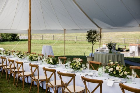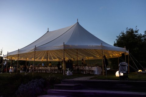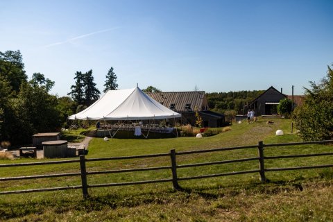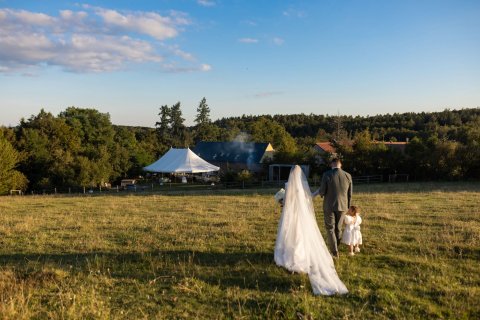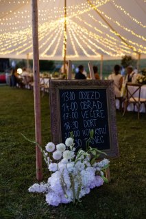 Nejen kvůli rozmarům počasí je dobré mít střechu nad hlavou. Naše šapitó v parném létě poskytne vytoužený stín. V chladnějších dnech jej naopak lze uzavřít bočnicemi a vnitřek vytápět. Prostě v každém případě se naše šapitó vždy vyplatí. Moc mu to slušelo i na svatbě v penzionu Zikmundov na začátku září. Nevěsta měla jasnou představu, kterou si s naší dopomocí splnila, za což jsme moc rádi.