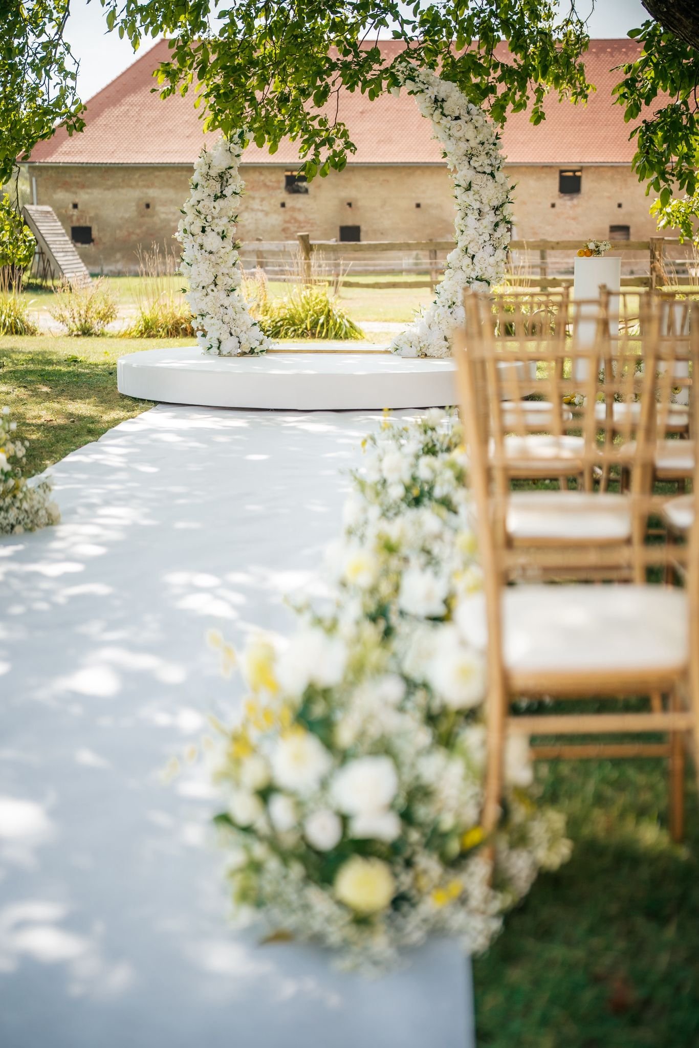 Nabízíme luxusní bílé pódium, které je možno využít např. na obřady. Průměr je 3 metry. Udělejte na své hosty dojem a půjčte si naše pódium, které bude základním a výrazným prvkem výzdoby svatebního obřadu. Stačí jej doplnit bílým kobercem, židlemi a spolu s květinovým aranžmá vytvoří krásné zatiší pro Vaše společné ANO.