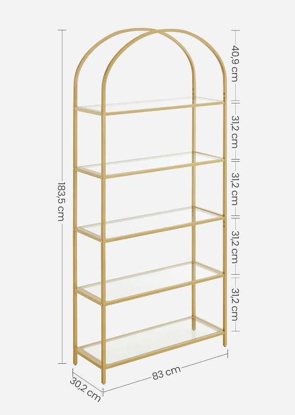 Tento krásný zlatý policový regál můžete využít na dekoraci svatebního místa nebo fotokoutku. Svou praktickou stránku ukáže ale nejvíce jakou součást sweet baru nebo rautu, kde krásně nabídne velké množství pochutin na malém místě. Ideální je také jako nápojový bar anebo tématický koutek s doutníky a výběrovou whiskey, anebo voňavkami, svíčkami a dárečky pro hosty.