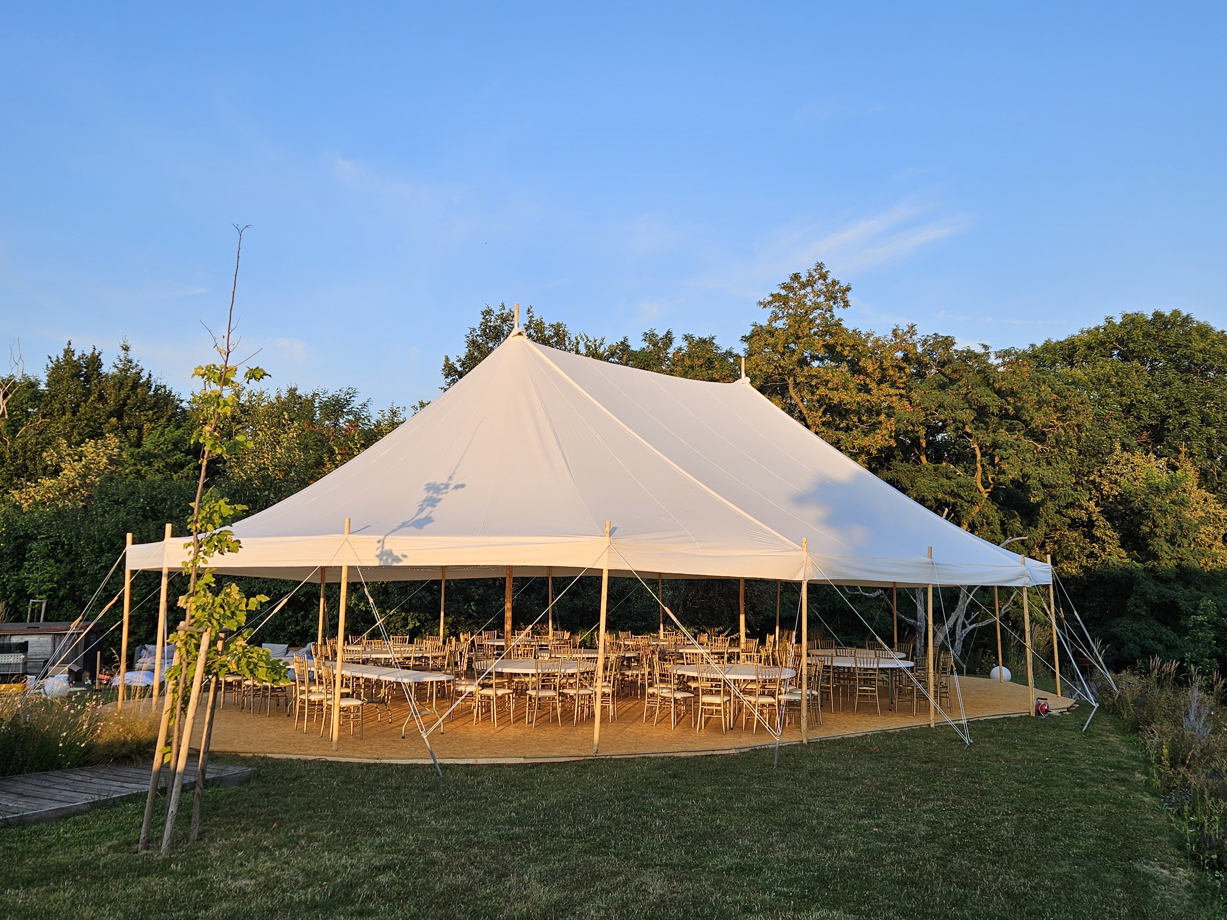 Máte vybrané místo na svatbu a potřebujete zastřešit posezení pro hosty? Máte velkou zahradu a rádi byste si svatbu uspořádali doma? Pak je pro vás skvělým řešením náš svatební stan ve tvaru šapitó. Šapitó je mobilní, svatbu si díky němu můžete uspořádat v podstatě kdekoliv, kde je rovinatá plocha pro jeho postavení. I kdybyste nevěděli, kde šapitó postavit, svatební místo vám rádi doporučíme, zejména takové, které jsme sami už vyzkoušeli a stan tam postavili!